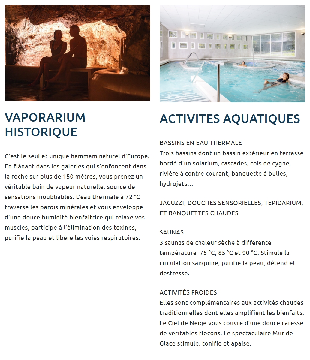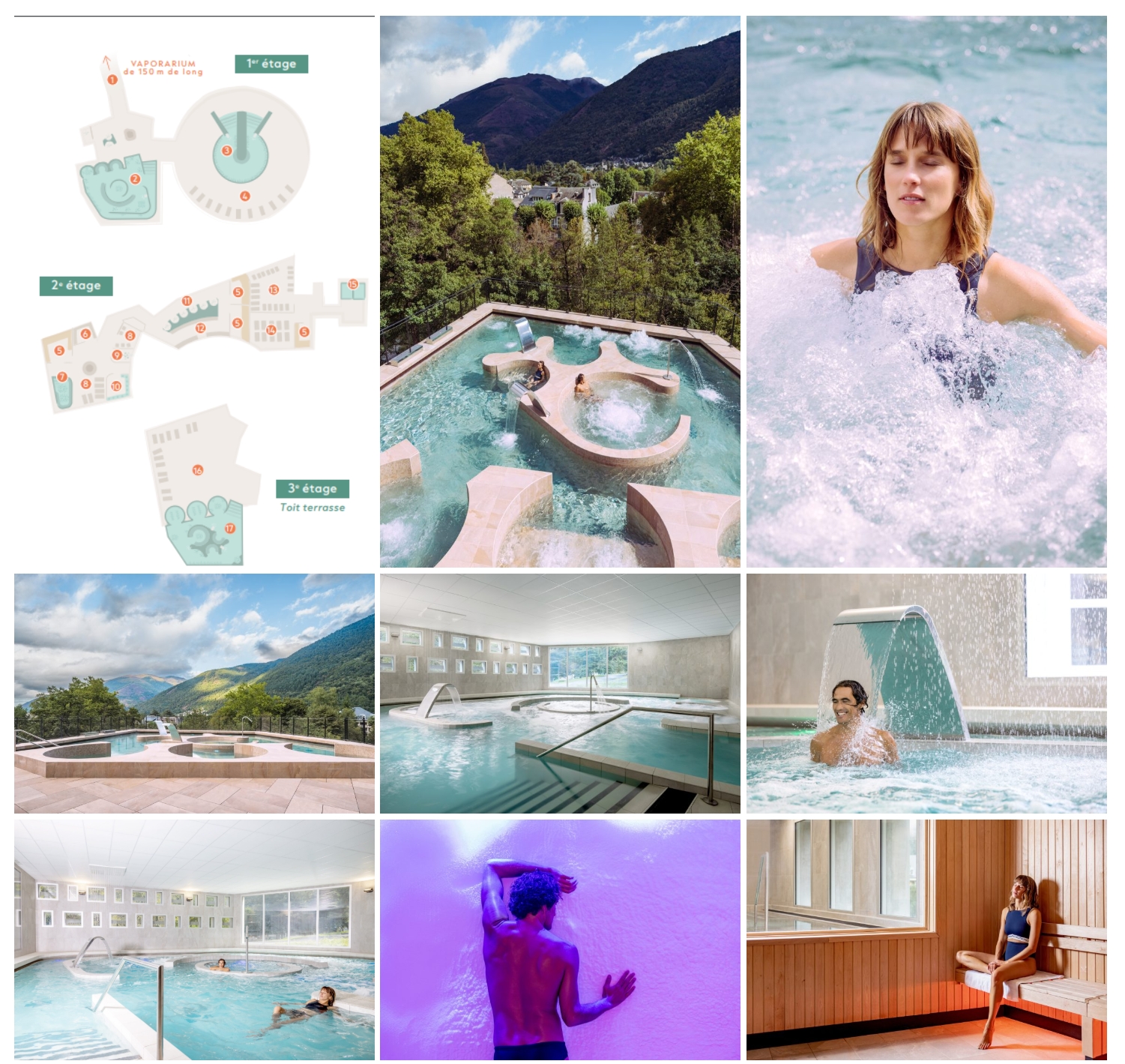 Notre partenariat avec les thermes de Luchon ont permis de vous proposer après votre journée de vélo deux heures de détente et relaxation dans les bains de la balnéothérapie afin de récupérer, et vous reboostez.